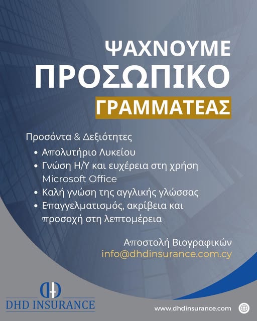 DHD Insurance: Ζητείται Γραμματέας – Λεμεσός