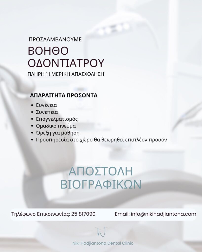 Dr. Niki Hadjiantona Dental Clinic: Ζητείται Βοηθός Οδοντιάτρου – Λεμεσός