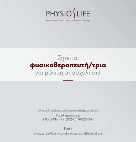 Γίνε μέλος της ομάδας μας στο Viber για συνεχή ενημέρωση!Physio Life κέντρο Φυσικοθεραπείας & αποκατάστασης: Ζητείται Φυσιοθεραπευτής – Λάρνακα